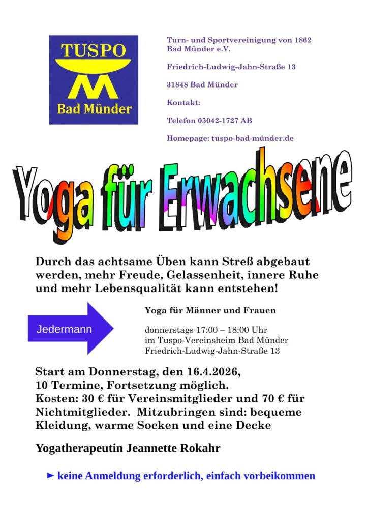 Start am Donnerstag, den 16.4.2026, im TUSPO-Vereinsheim in Bad Münder,